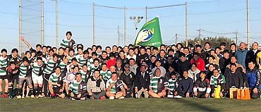 その後、現役生の活躍状況について、顧問の石原先生と小出先生から報告をいただきました。また、卒業する高校3年生を新しい会員に迎え、オリジナルTシャツを贈呈しました。