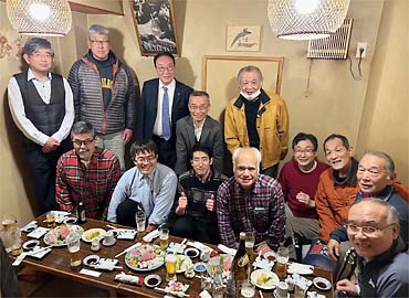 定例総会後の懇親会では、来賓として出席いただいた二川同窓会会長からご挨拶をいだだき、その後、顧問の石原先生と小出先生から2024年に開催された福岡インターハイの活躍状況などの報告をいただき、大いに